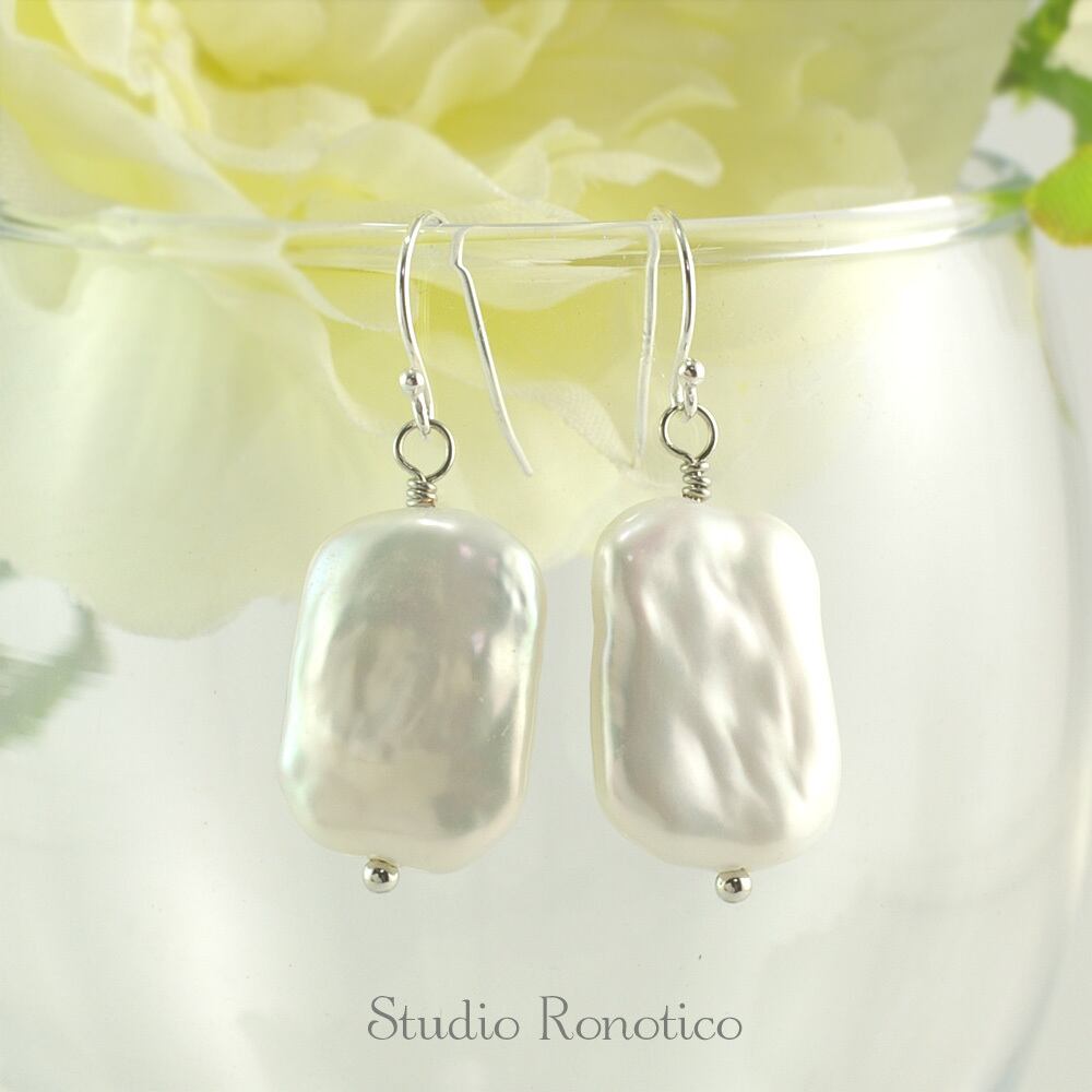 レクタングルパールのふんわりとした滑らかで美しい光沢のバロックパールのピアスです。