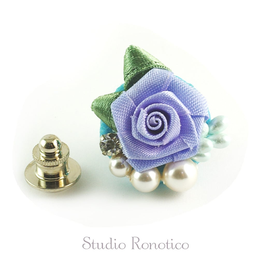薔薇とパール ブートニエール ラペルピン スーツピン ピンブローチ メンズ レディース ブルー
