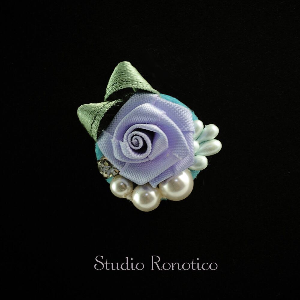 薔薇モチーフはリボン細工で、パールはオーストリア製のクリスタルパールを使用しています。内側から輝くような美しい光沢が魅力です。